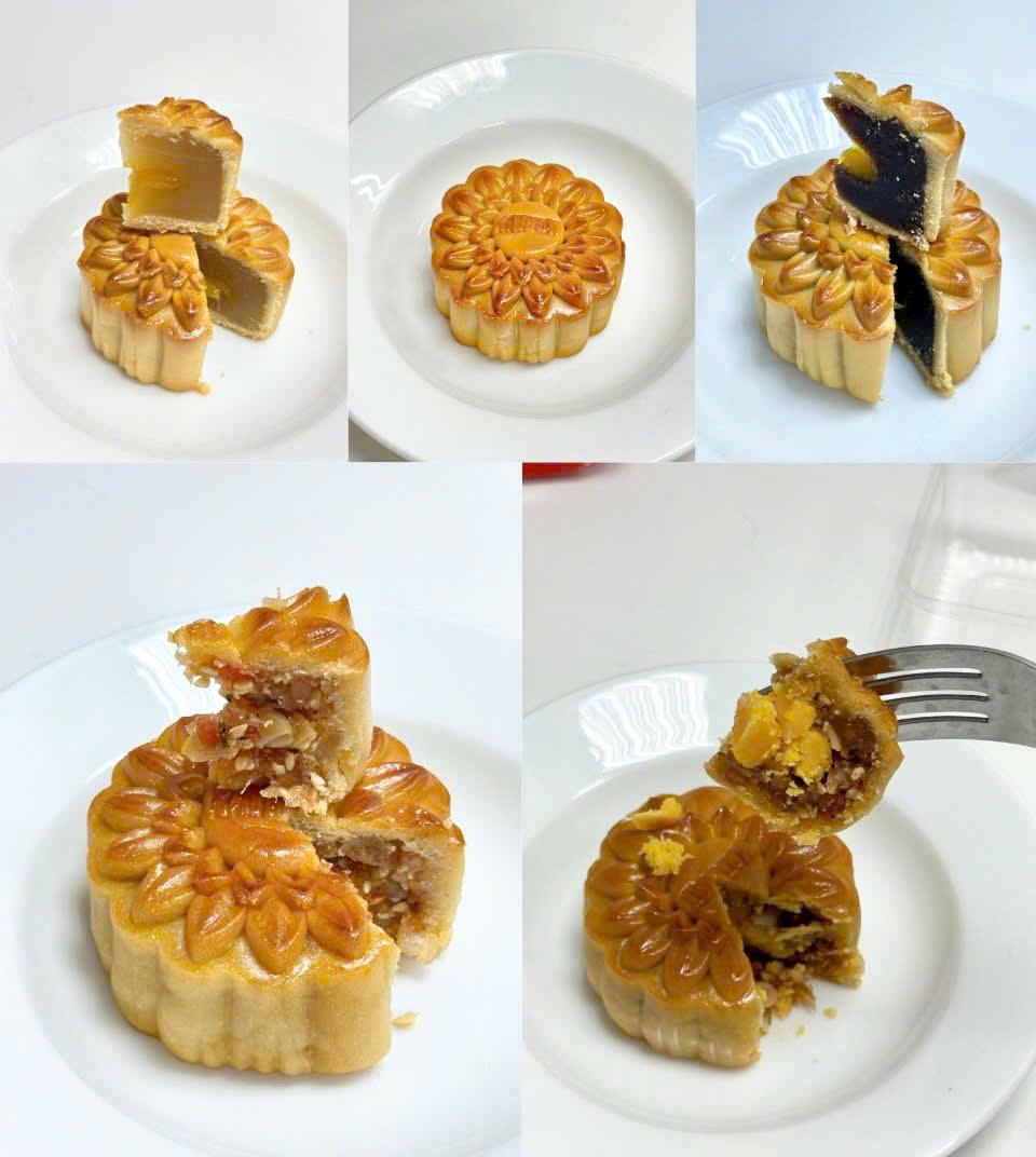 Về phần nhân bánh, mỗi loại bánh lại mang một sắc thái riêng. Bánh thập cẩm xá xíu có vị đậm và thơm mùi ngũ vị hương đặc trưng, tổng thể ăn khá vừa miệng. Bánh hạt sen có nhân mềm, dễ ăn, vị sen nhẹ nhàng hòa cùng hương đậu phộng, vừa bùi vừa thanh.