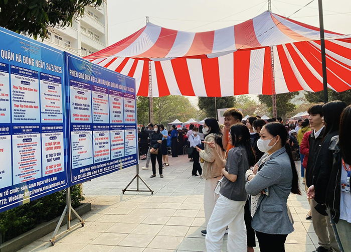 Ghi nhận thực tế cho thấy, tại sàn giao dịch việc làm Hà Nội, các doanh nghiệp tăng cường tuyển dụng, trong đó nhiều doanh nghiệp tuyển với số lượng lớn như Công ty Cổ phần Cơ điện Hà Nội HIMEP tuyển dụng 10 tổ trưởng, 30 nhóm trưởng, 150 công nhân (điện, điều hòa, cấp thoát nước, cơ khí) làm việc tại các dự án của công ty với mức thu nhập từ 14 – 30 triệu đồng/tháng; Bệnh viện Đa khoa Hồng Ngọc Phúc Trường Minh tuyển dụng 40 nhân viên vệ sinh buồng phòng, 30 nhân viên an ninh, 20 nhân viên vệ sinh công cộng, 10 nhân viên giặt là, 10 nhân viên vận chuyển; Công ty TNHH HOMECARE Hoàng Minh tuyển dụng 50 nhân viên sắp xếp, dọn dẹp chăm sóc căn hộ chung cư, biệt thự cao cấp... với mức lương lên tới 18 triệu đồng/tháng; Công ty TNHH Thương mại kỹ thuật và năng lượng mặt trời Hùng Phát tuyển 10 nhân viên kỹ thuật cơ khí, 10 nhân viên kỹ thuật cơ điện, trình độ từ trung cấp trở lên, mức lương từ 12 triệu đồng trở lên/tháng…