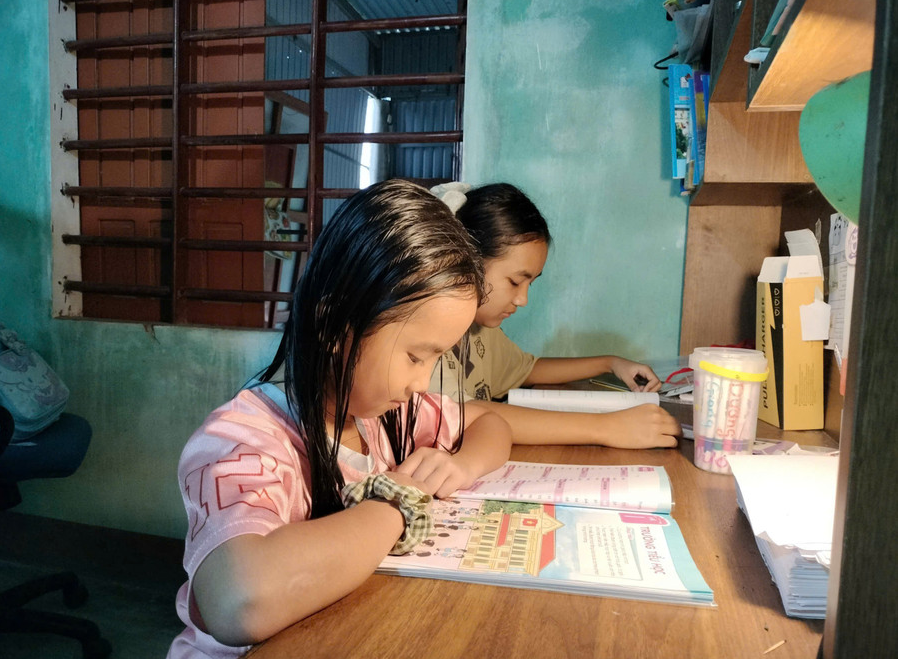 Bố đổ bệnh, Trà Giang (6 tuổi) và Thùy Dương (12 tuổi) phải tự lo cuộc sống sau mỗi giờ tan trường.