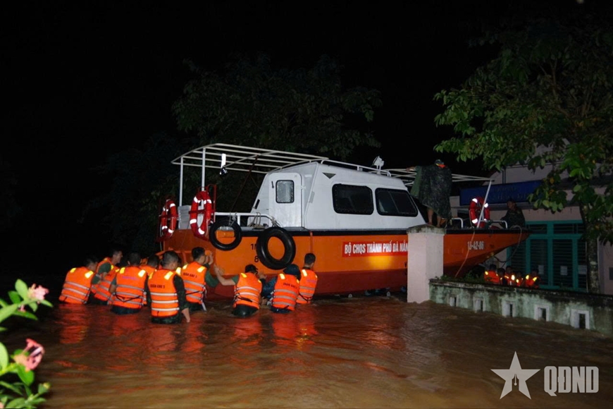 Nhận được tin báo, Đại tá Trần Hữu Ích, Chỉ huy trưởng Bộ CHQS TP Đà Nẵng lập tức chỉ đạo điều động lực lượng gần 100 cán bộ, chiến sĩ hành quân trong đêm, sử dụng ca nô ST-750, ST-660, 2 xe cứu hộ tiếp cận địa bàn, đưa người dân rời vùng ngập sâu.