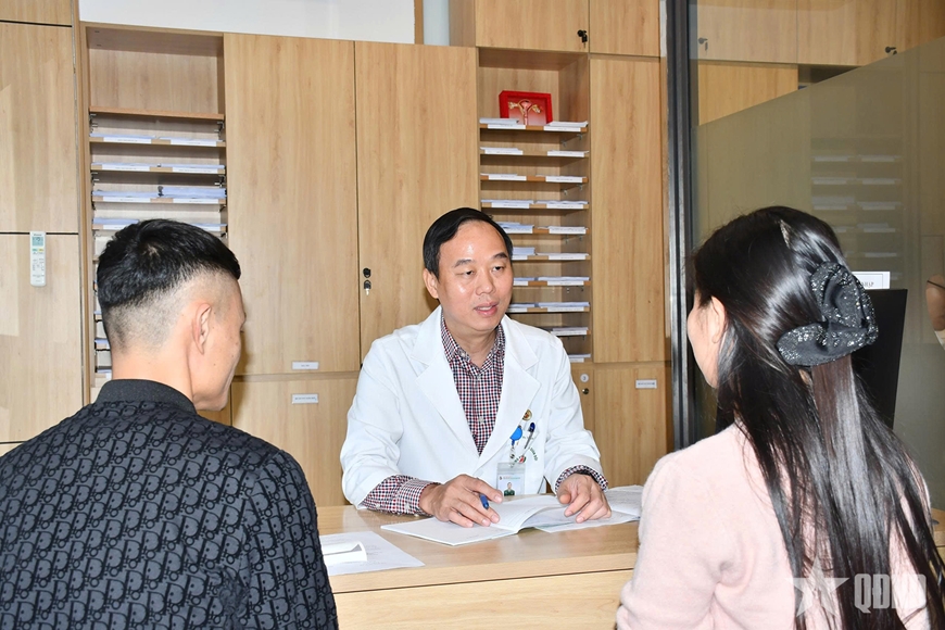 Đại tá, PGS, TS Trịnh Thế Sơn, Giám đốc Viện Mô phôi lâm sàng Quân đội (Học viện Quân y) tư vấn cho bệnh nhân. |