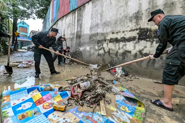Cán bộ, chiến sĩ Công an Thủ đô giúp người dân xã Trung Giã dọn dẹp sau ngập lụt |