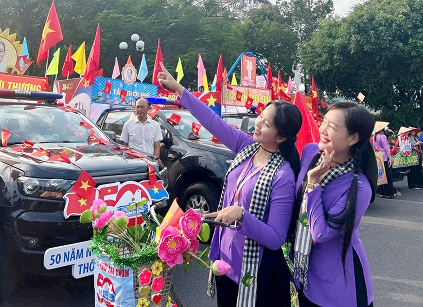 | Chính quyền địa phương tổ chức hội thi trang trí xe tuyên truyền tại di tích Ngã ba Giồng. |