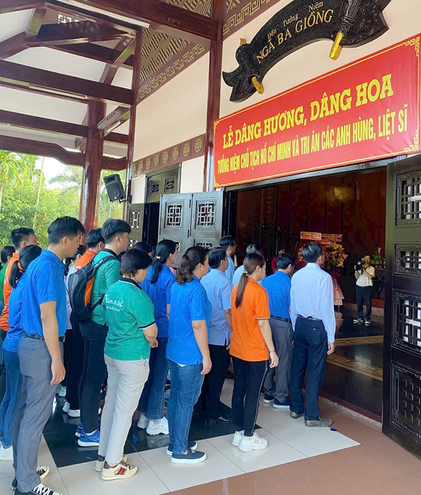 | Nhiều cơ quan lựa chọn di tích Ngã ba Giồng để tổ chức dâng hương, báo công. |