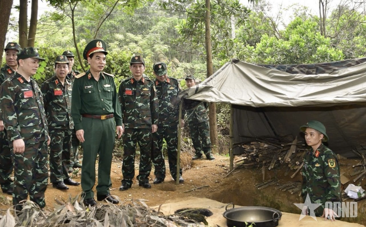 | Trung tướng Lê Minh Thái, Giám đốc Học viện, Trưởng ban chỉ đạo Diễn tập H25A kiểm tra công tác diễn tập. |