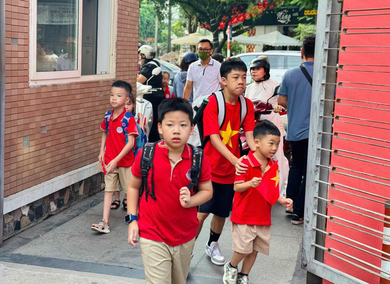 Trong không khí rộn ràng sáng khai trường, nhiều phụ huynh gác lại công việc để đồng hành cùng con. Chị Nguyễn Hoàng Yến (trú tại Nghĩa Đô, Hà Nội) chia sẻ, hôm nay con chị bước vào lớp 1 – cột mốc quan trọng trong hành trình học tập. “Tôi muốn đồng hành cùng con trong lễ khai giảng đầu tiên này. Mong rằng con sẽ nỗ lực học, xứng đáng là con ngoan trò giỏi. Tôi cũng kỳ vọng các thầy cô sẽ quan tâm, dạy dỗ con thật tốt”, chị nói.