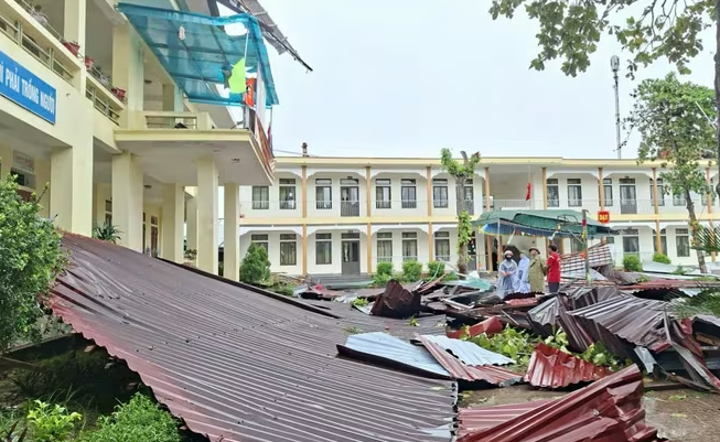 Tại Quảng Trị, nhiều trường bị tốc mái, sập tường rào, hư hỏng thiết bị; học sinh toàn tỉnh nghỉ học để bảo đảm an toàn.