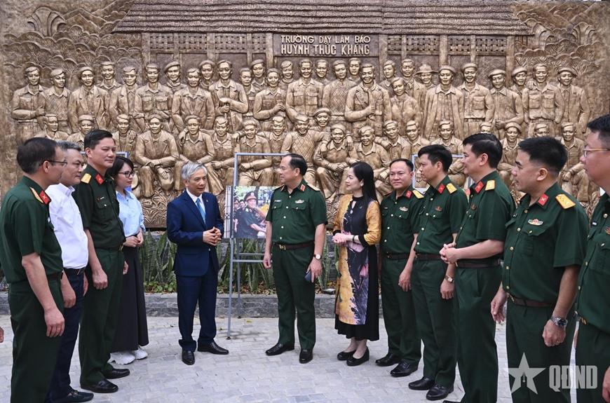 Cán bộ, phóng viên Báo Quân đội nhân dân về nguồn thăm di tích Trường dạy làm báo Huỳnh Thúc Kháng, tháng 4-2025. Ảnh: VIỆT TRUNG