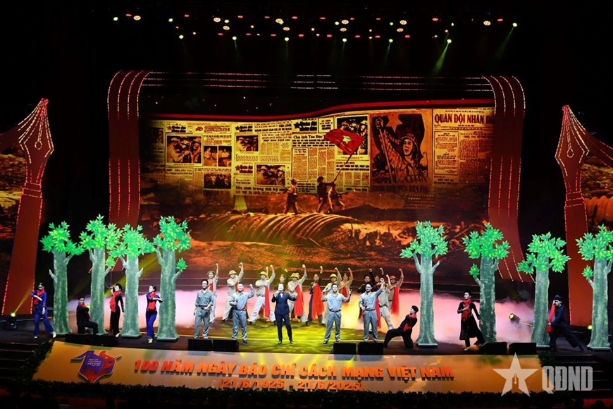 Hình ảnh Báo Quân đội nhân dân xuất bản tại Mặt trận Điện Biên Phủ xuất hiện tại Lễ kỷ niệm 100 năm Ngày Báo chí cách mạng Việt Nam, tháng 6-2025. Ảnh: TUẤN HUY