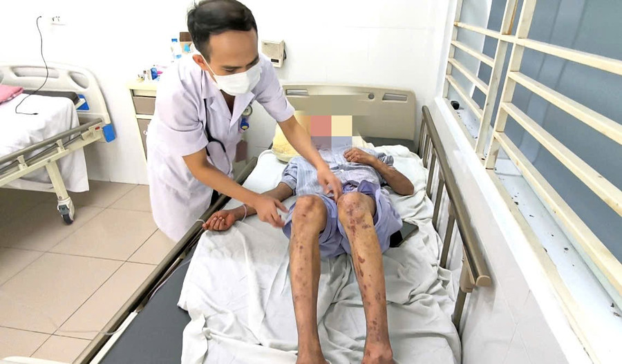 Sáng hôm sau, mắt anh mờ dần, da đỏ toàn thân. Anh T. đến bệnh viện và được chẩn đoán kích ứng da. Tại Bệnh viện Bệnh Nhiệt đới Trung ương, bác sĩ xác định bệnh nhân T. bị dị ứng silicon, sốc phản vệ độ 2 - 3.