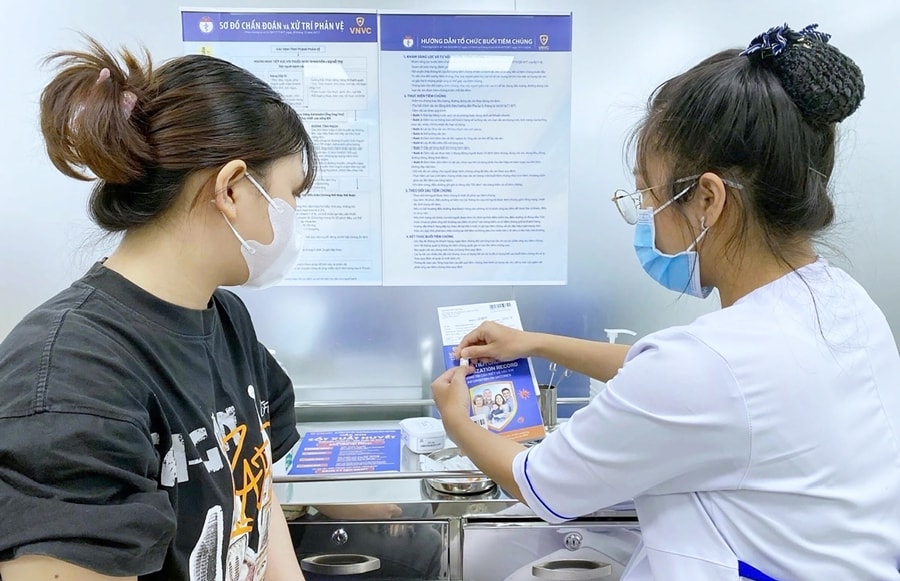 Nhân viên y tế tư vấn tiêm vắc xin phòng bệnh dại cho người dân tại Hệ thống tiêm chủng VNVC. Ảnh: Phong Lan