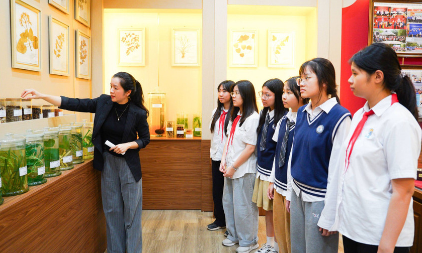 Học sinh trải nghiệm thực tế tại Học viện Y – Dược học cổ truyền Việt Nam. Ảnh: NTCC |
