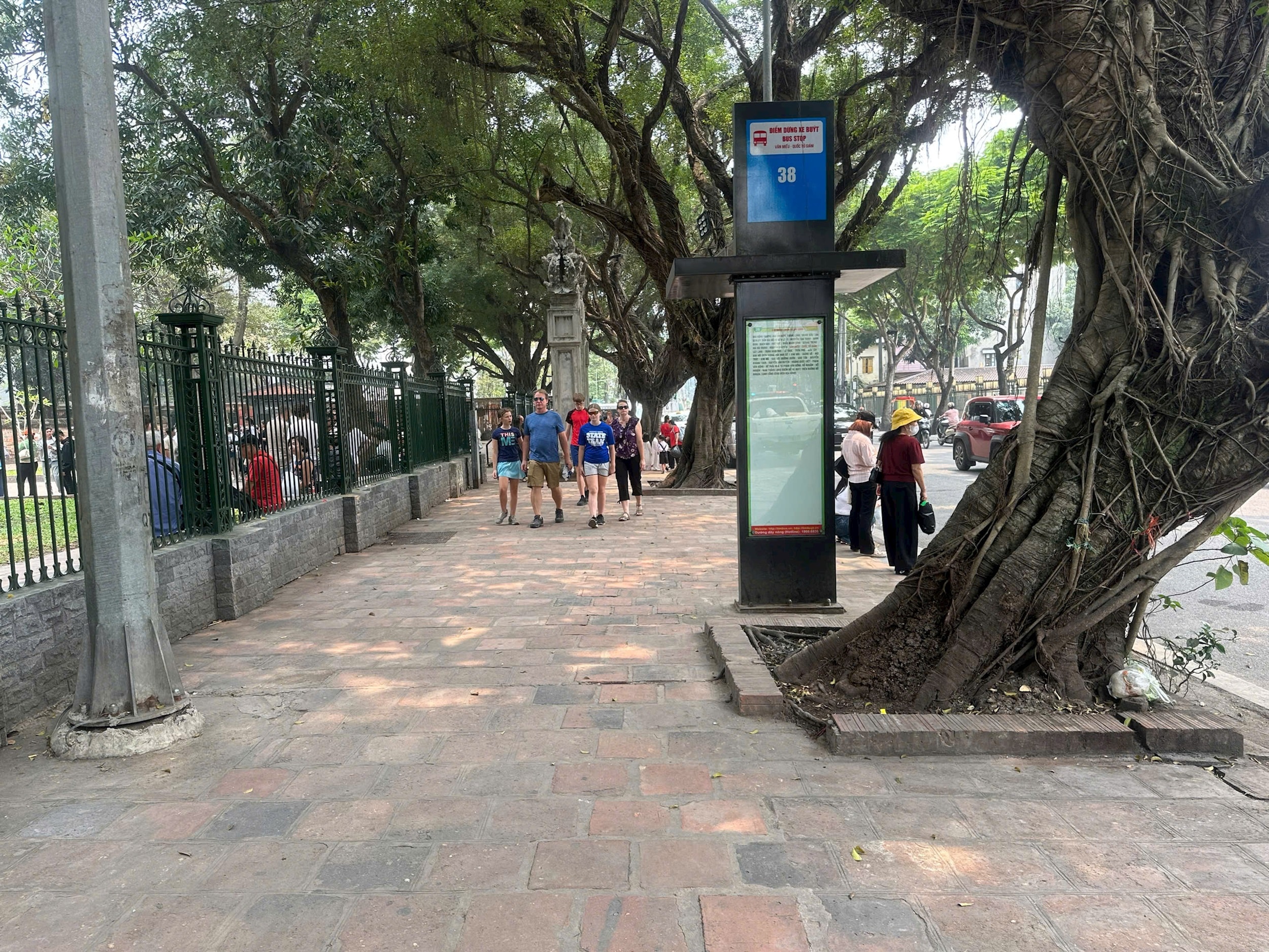 Vỉa hè ở khu vực Hồ Văn thuộc di tích Văn Miếu - Quốc Tử Giám trở nên thông thoáng, sạch đẹp hơn. Ảnh: Quyên An.