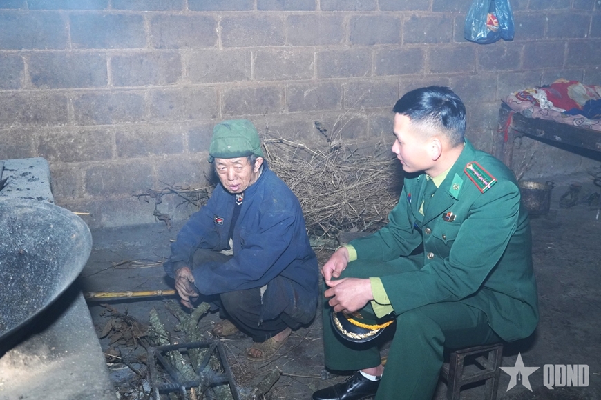 Bộ đội Đồn Biên phòng Cửa khẩu Săm Pun (Bộ đội Biên phòng tỉnh Tuyên Quang) đến từng hộ dân tuyên truyền, nhắc nhở người cao tuổi chăm sóc sức khỏe, tránh rét.