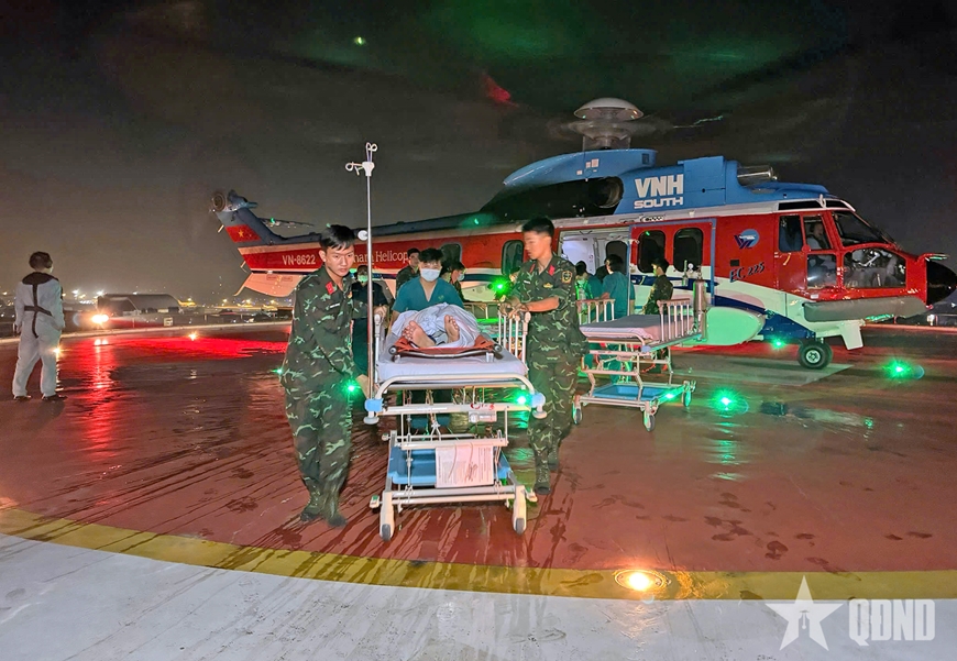 Vào lúc 3 giờ 20 phút sáng 1-10, trực thăng EC-225 mang số hiệu VN-8622 của Binh đoàn 18 đã đáp xuống sân đỗ trực thăng tại nóc tòa nhà Viện Chấn thương chỉnh hình, Bệnh viện Quân y 175, đưa về đất liền an toàn 3 bệnh nhân nặng từ 3 đảo thuộc đặc khu Trường Sa, tỉnh Khánh Hòa.
