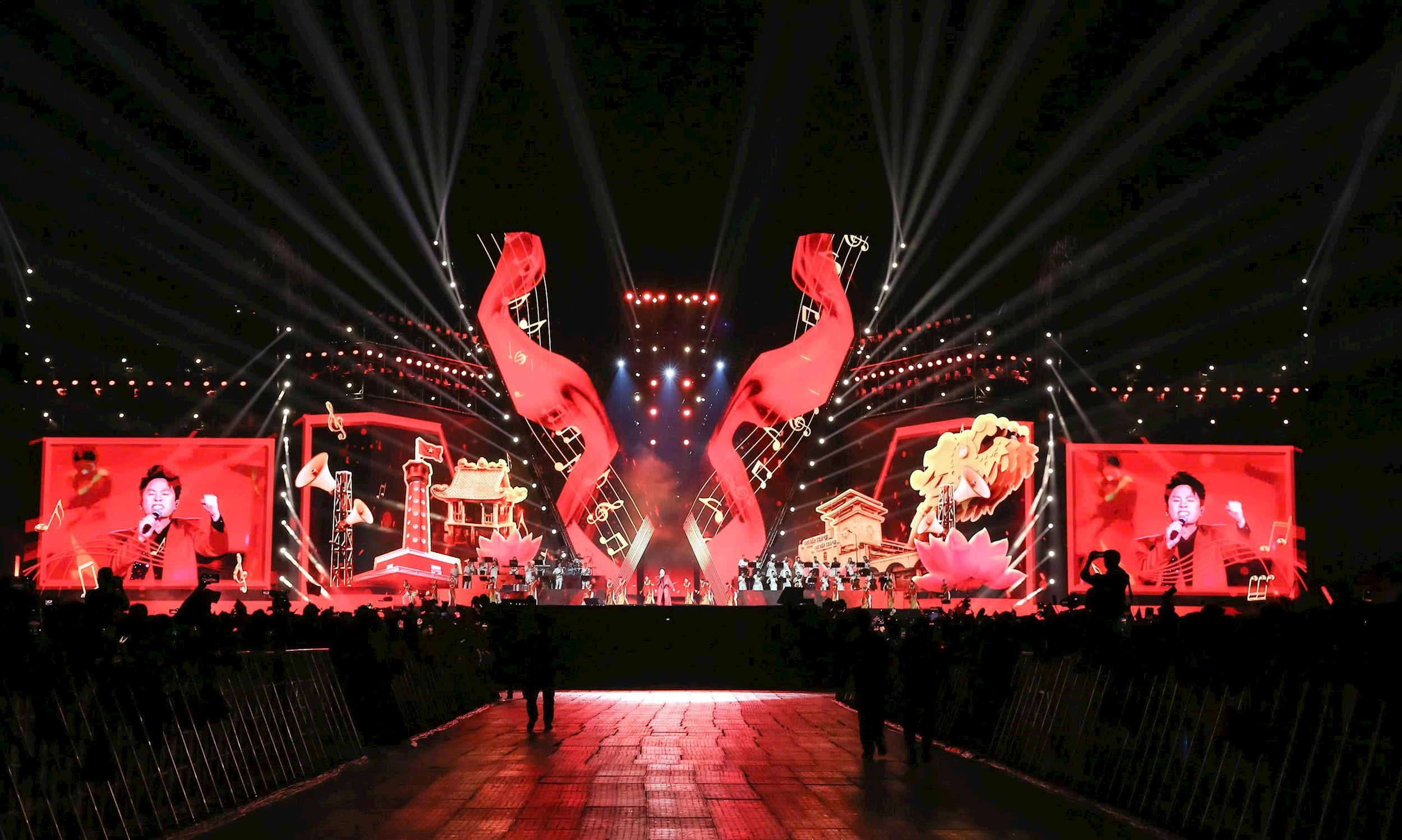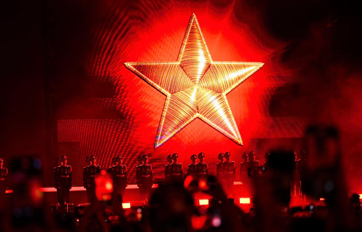 Ngay sau đó, màn trình diễn Lighting Show đầy ấn tượng và đặc biệt là tiếng hát "Tiến Quân ca" hào hùng đã tạo nên một không khí trang trọng, thiêng liêng, nhắc nhở về cội nguồn, về sự hy sinh của cha ông để có được độc lập, tự do.