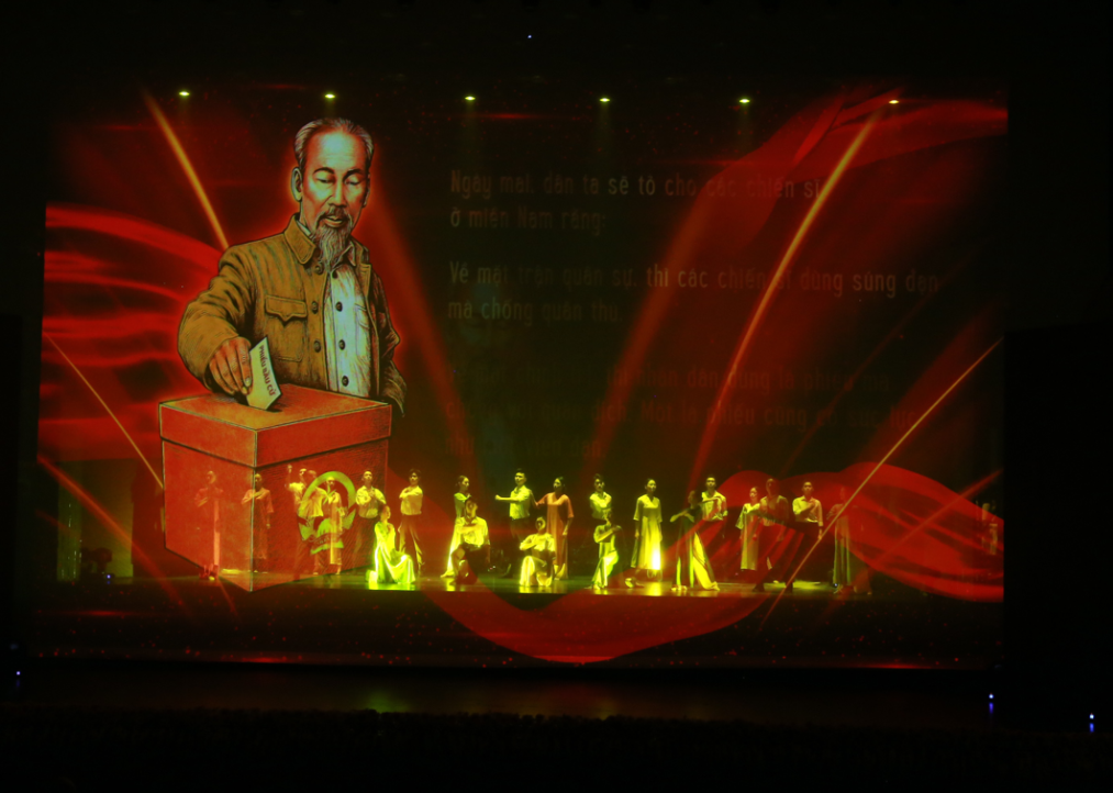 Các đại biểu tham dự Chương trình nghệ thuật chính luận "Vinh quang Quốc hội Việt Nam" cũng đã xem phóng sự tái hiện Ngày Tổng tuyển cử đầu tiên bầu Quốc hội Việt Nam; lắng nghe lời căn dặn của Chủ tịch Hồ Chí Minh từ cuộc Tổng tuyển cử đầu tiên ấy, đến nay vẫn còn nguyên giá trị: "Tất cả đại biểu Quốc hội hứa với đồng bào là được cử vào Quốc hội để làm đại biểu Quốc hội, không phải là để làm quan, không phải là để ngồi trên ăn trốc, mà là người đầy tớ tuyệt đối trung thành của đồng bào".