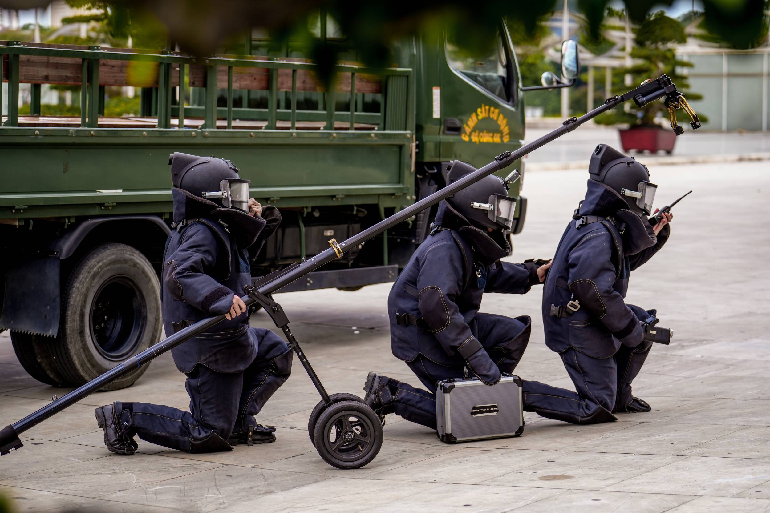 “Mệnh lệnh của cấp trên là yêu cầu Đoàn Cảnh sát đặc nhiệm số 1 nhanh chóng tổ chức kíp chiến đấu của đơn vị chống khủng bố, giải cứu con tin. Tổ chức đội hình để nhanh chóng tiếp cận xe của đối tượng, truy đuổi và khống chế, đánh bắt đối tượng, giải cứu con tin”, Đại tá Nguyễn Đức Khanh chỉ huy.