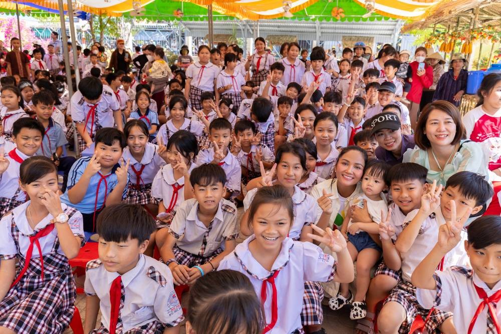 Hoa hậu H’Hen Niê đi cùng đoàn gồm cơ quan ban ngành, Phòng giáo dục huyện Vĩnh Cửu, Uỷ ban xã Phú Lý, đại diện Nha khoa Bình An, đại diện tổ chức Room To Read |