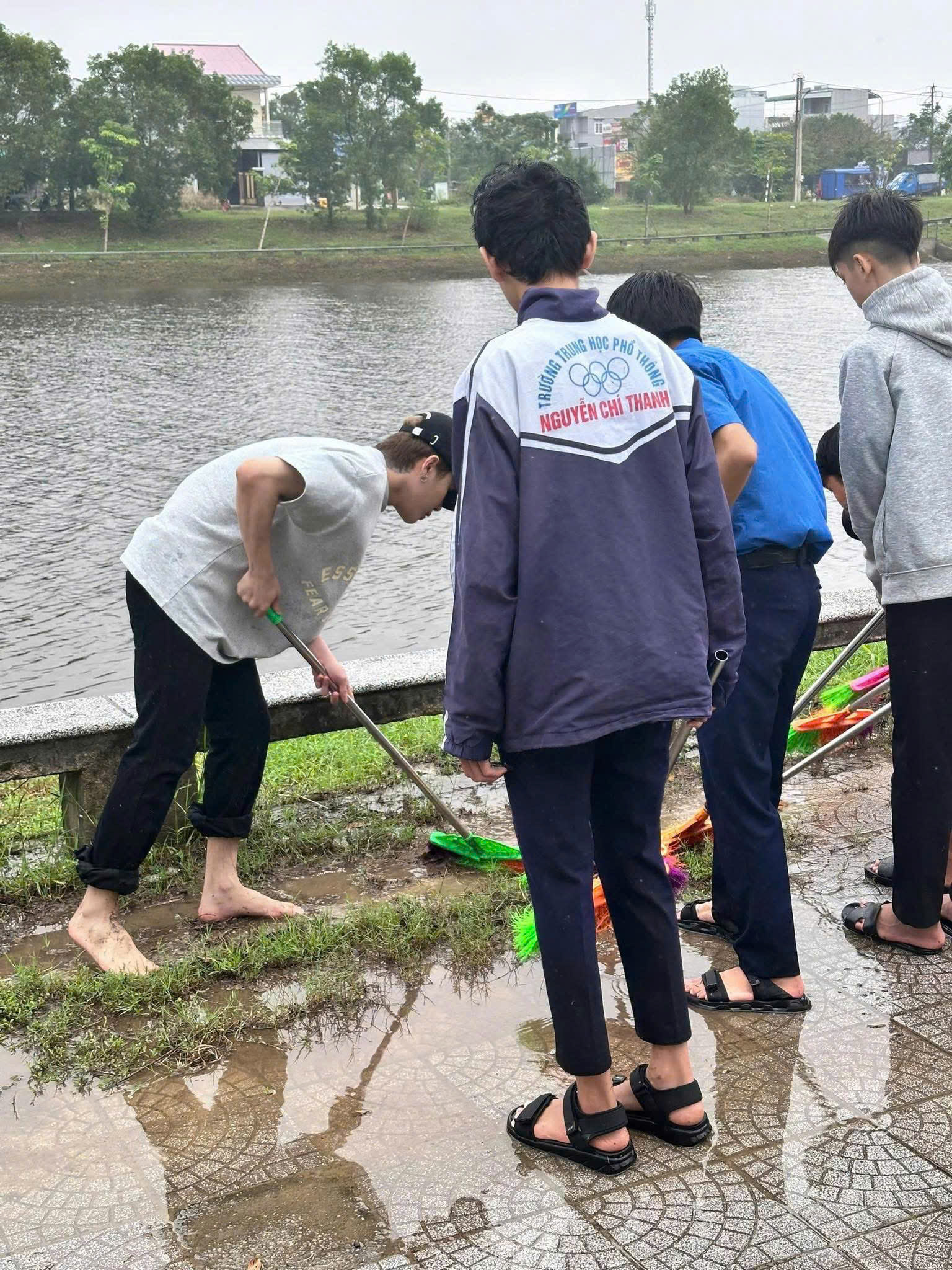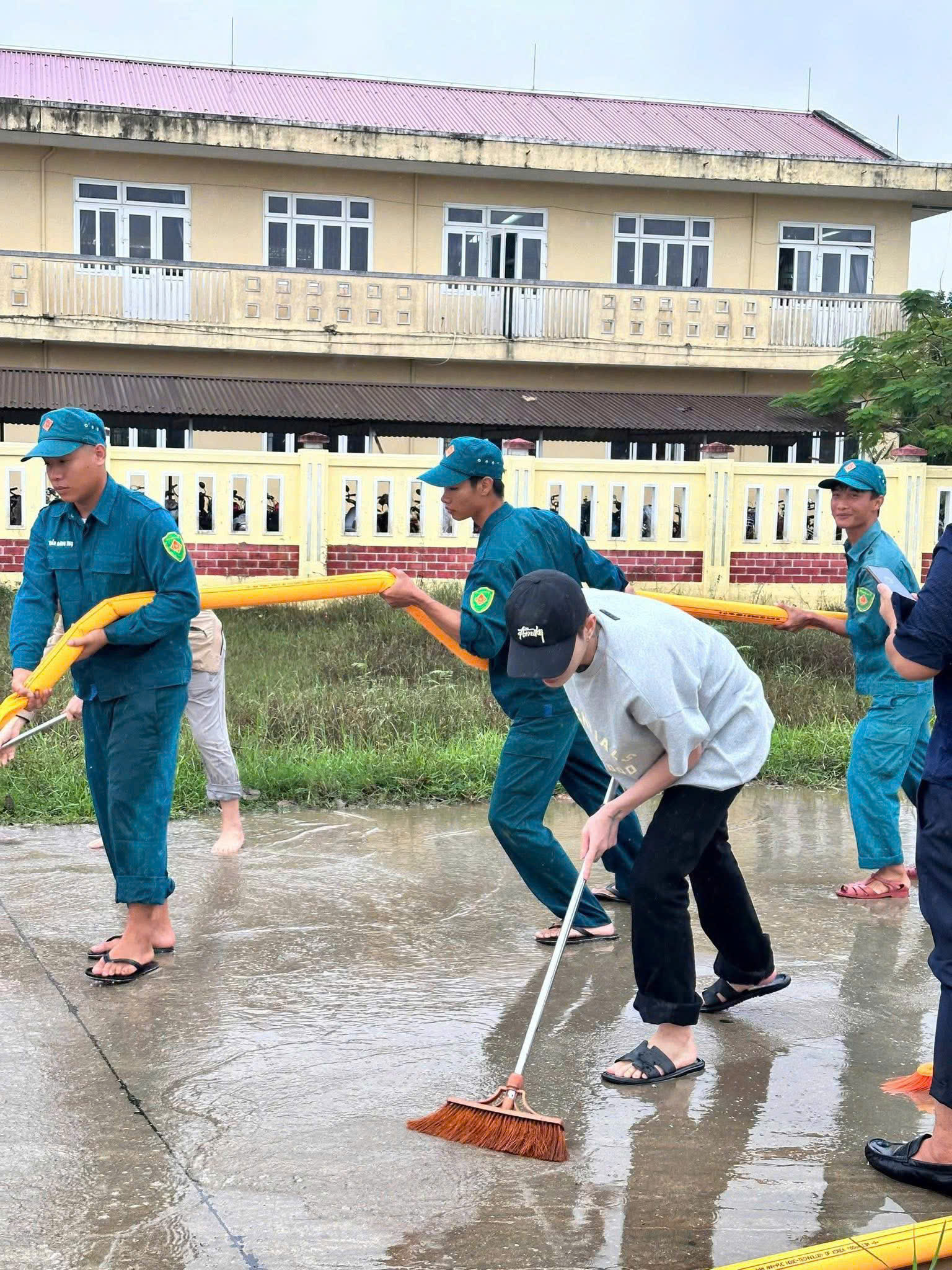 | Jack cùng bà con và Đoàn viên, thanh niên xã Quảng Điền dọn dẹp vệ sinh môi trường sau lũ giúp người dân |