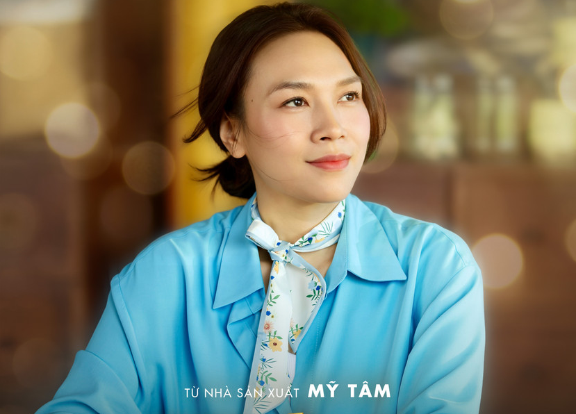 Đáng chú ý, poster của Mỹ Tâm với dòng chữ “vai Út…” tạo ấn tượng bởi không gian sáng ấm, mang lại cảm giác thanh thản và đầy hy vọng. Nhân vật xuất hiện với trang phục xanh nhạt cùng chiếc khăn cổ, tạo nên diện mạo nhẹ nhàng, thanh lịch, phản ánh một tính cách điềm tĩnh và sâu sắc. Góc nhìn nghiêng cùng ánh mắt hướng lên gợi cảm giác về sự chờ đợi, khát vọng hoặc một hành trình cá nhân còn nhiều điều phía trước. Việc tên nhân vật được để lửng bằng dấu ba chấm trở thành chi tiết gợi mở, khiến người xem tò mò về thân phận và vai trò thực sự của nhân vật trong câu chuyện. Gam màu vàng dịu bao phủ khung hình tạo cảm giác ấm áp, đồng thời đối lập với sắc thái có phần căng thẳng ở một số poster khác, cho thấy sự đa dạng trong thế giới cảm xúc mà bộ phim xây dựng.
