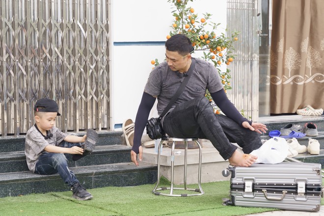 Dù nhiều lần bối rối vì sự nhạy cảm của con, Trung Ruồi vẫn giữ vững sự kiên nhẫn và mềm mỏng. Khi đi qua khu nhà thuyền, anh lại một lần nữa cúi xuống rửa dép cho con – một hành động nhỏ bé nhưng khiến khán giả xúc động bởi sự tỉ mỉ, dịu dàng và tình cảm chân thành của một người cha.