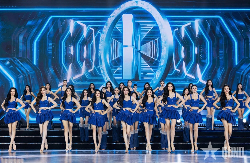 | Các thí sinh đồng diễn khởi động cho đêm chung kết đầy sôi động. Ảnh BTC cung cấp |
