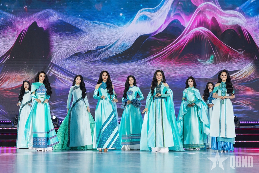 | Các thí sinh trình diễn trang phục áo dài. Ảnh BTC cung cấp |