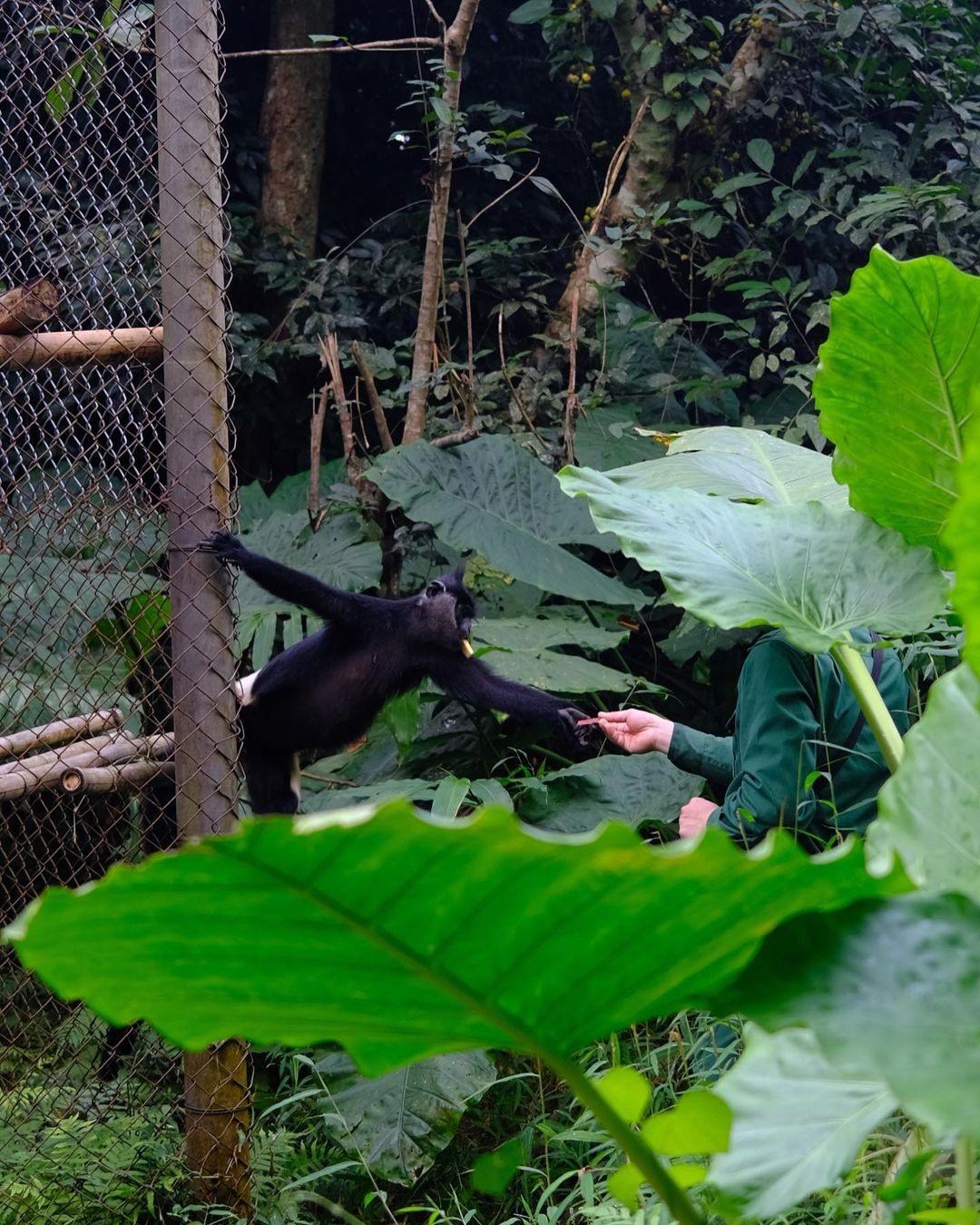 Nữ diễn viên còn có cơ hội tận mắt thấy những loài động vật hoang dã như khỉ, voọc... được nuôi và bảo vệ tại Trung tâm Cứu hộ Linh trưởng quý hiếm.