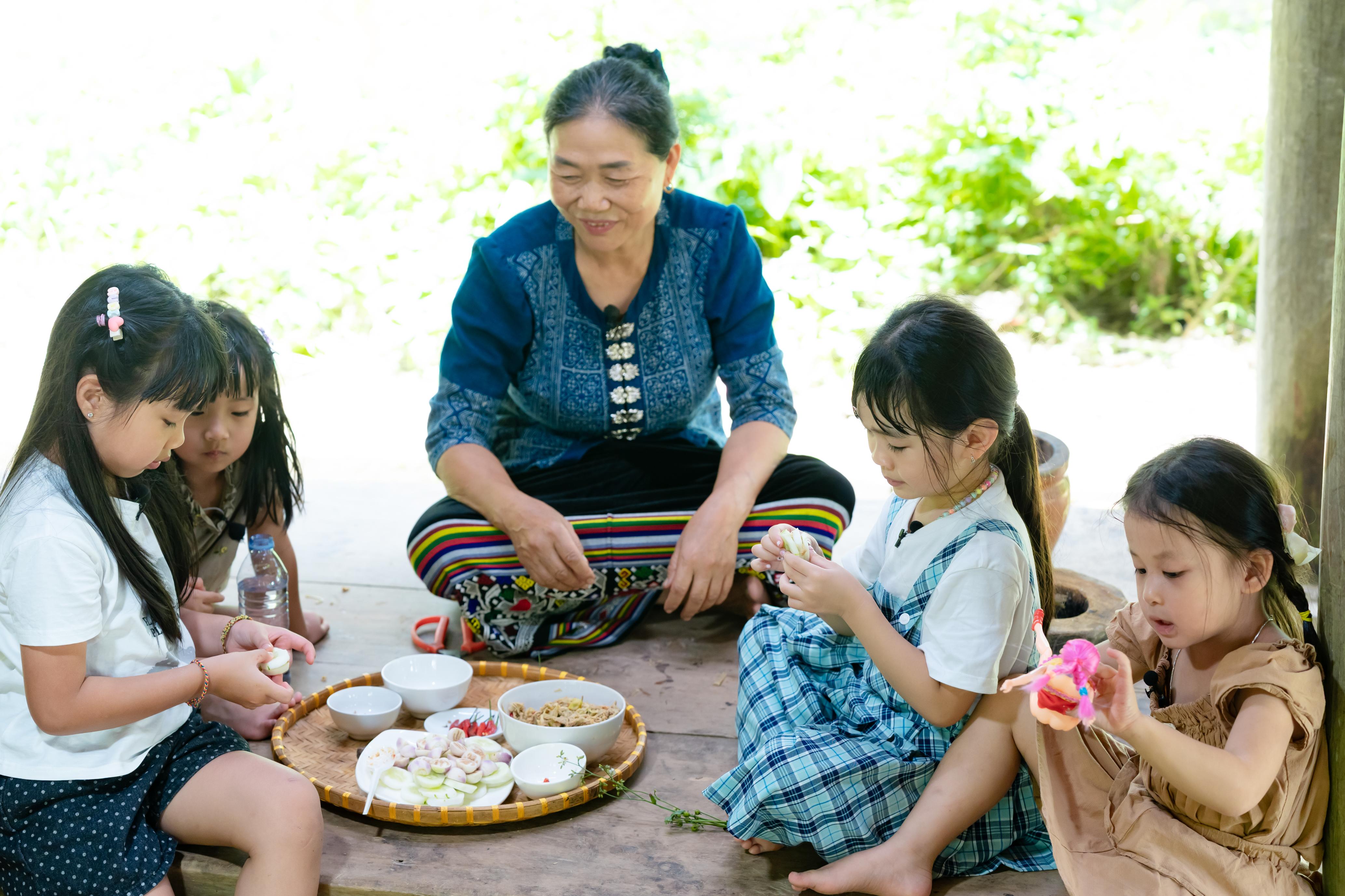 Trong khi các bố tất bật chuẩn bị bữa ăn cho các con, các bé cũng có nhiệm vụ riêng: học cách làm món “chẻo măng chua” - một món chấm dân dã đặc trưng của người Thái, thường ăn kèm với các dưa chuột và cà pháo.