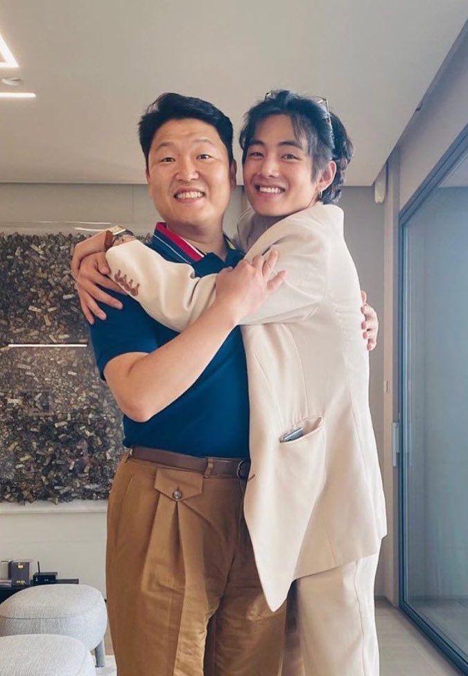 Tháng 9.2020, mạng xã hội rần rần vì chủ nhân hit "Gangnam Style" đã đăng bức ảnh chụp cùng V lên trang cá nhân Instagram. Trong ảnh, 2 nam ca sĩ ôm nhau thắm thiết và nở nụ cười không thể tươi hơn.