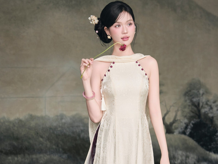 Cách phối phụ kiện cũng được tiết chế vừa phải, giúp tà áo dài trở thành điểm nhấn chính, đồng thời mang đến cảm giác thanh lịch và trang nhã.