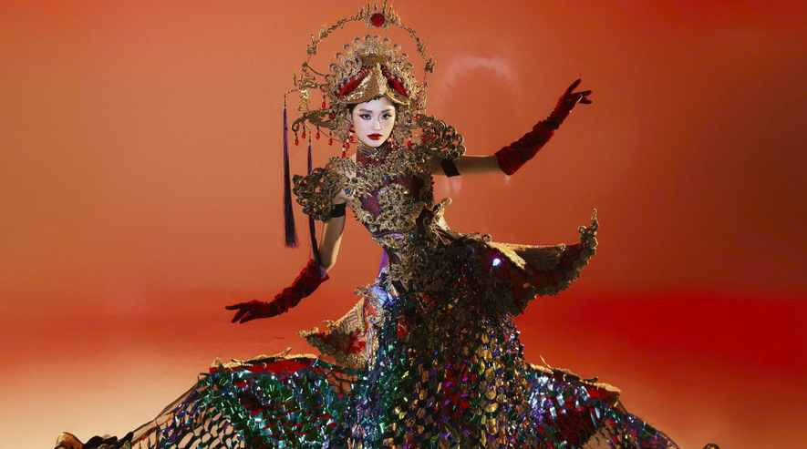 Hoa hậu Yến Nhi tỏa sáng trong phần thi Trang phục dân tộc tại Miss Grand International 2025.