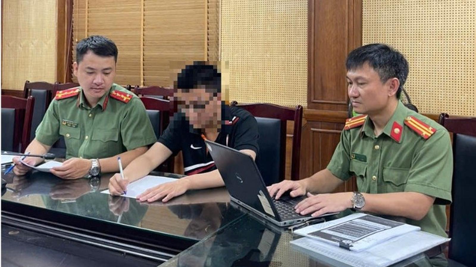 Công an TP Hà Nội làm việc với thí sinh vi phạm để điều tra, làm rõ vụ lộ đề thi tốt nghiệp THPT 2025 xảy ra tại Hà Nội. Ảnh: CAHN