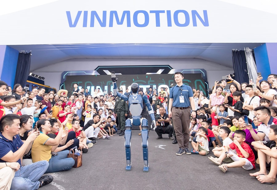 Người dân tham quan, trải nghiệm robot hình người đầu tiên “Made in Vietnam” của Tập đoàn Vingroup tại Triển lãm thành tựu đất nước “80 năm hành trình Độc lập - Tự do - Hạnh phúc”.