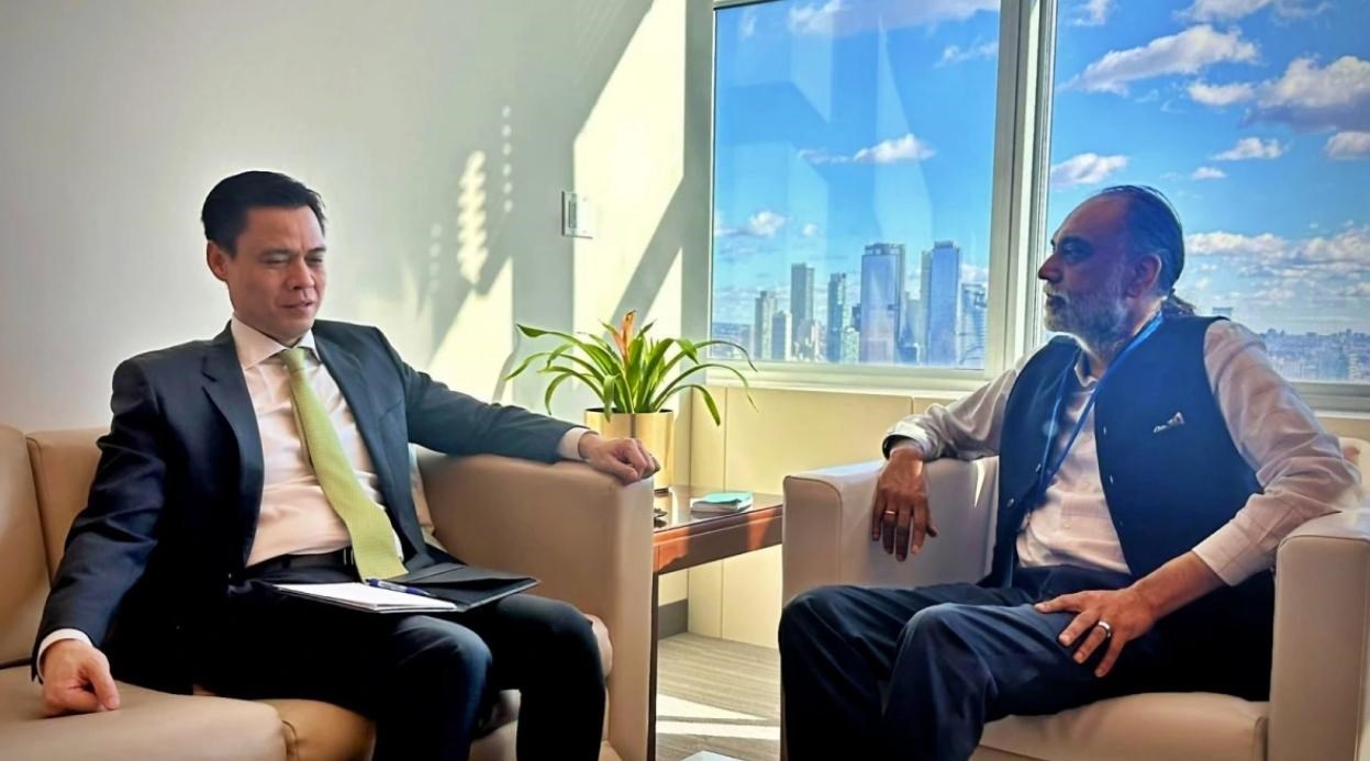 Đại sứ Đặng Hoàng Giang và ông Amandeep Singh Gill, Phó tổng thư ký, Đặc phái viên của Tổng thư ký Liên hợp quốc về công nghệ. Ảnh: vov.vn |