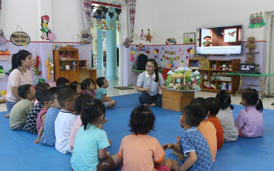 Giáo viên Trường Mầm non Nậm Khao, xã Mường Tè (Lai Châu) ứng dụng AI để khơi dậy hứng thú cho trẻ. Ảnh: Hà Thuận