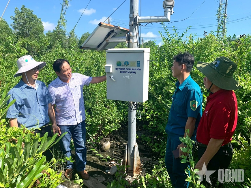 Hệ thống cảnh báo sớm thiên tai được lắp đặt tại xã Đất Mũi, tỉnh Cà Mau. Ảnh: LA QUANG DUY |