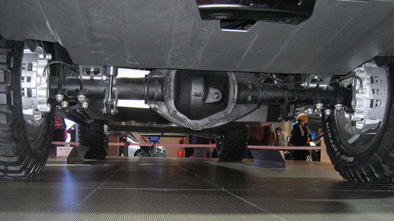 Hình ảnh nhìn từ gầm xe của trục sau dạng cầu cứng trên xe tải GMC. Ảnh: Dana60Cummins