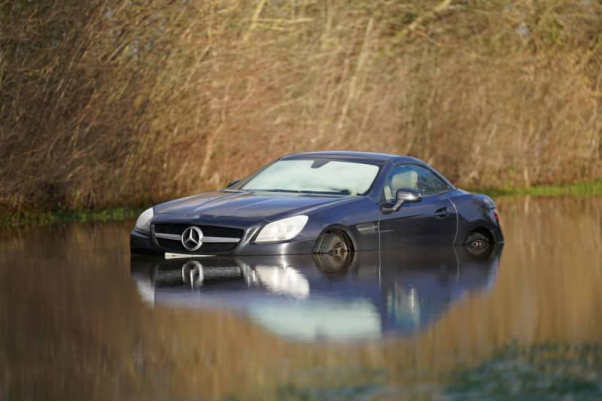 Hình ảnh chiếc xe lao xuống hồ nước. Ảnh: Joe Giddens/DPA