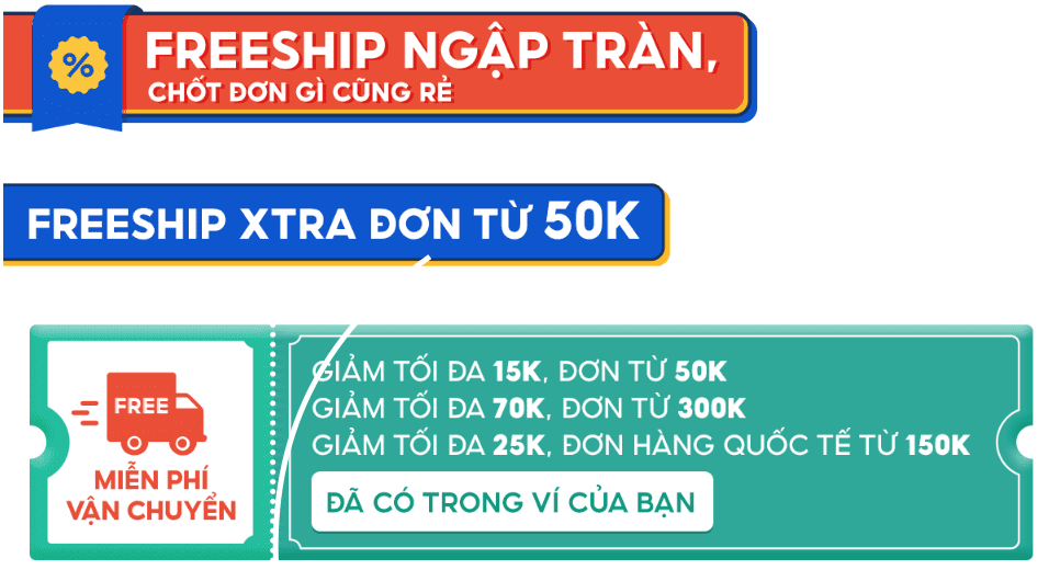 Với “Shopee Gì Cũng Rẻ - Mua là Freeship”, Shopee tiếp tục chiêu đãi người dùng “đặc sản” freeship trên phạm vi toàn sàn. Chỉ cần chọn lựa sản phẩm bạn quan tâm, Shopee sẽ miễn phí vận chuyển và giúp bạn mua sắm theo cách thức an toàn nhất ngay tại nhà. Nhớ kiểm tra các voucher freeship đã có sẵn trong mục “Ví Voucher” của bạn và áp mã tại bước thanh toán đơn hàng để mua sắm “rẻ càng thêm rẻ” nhé!