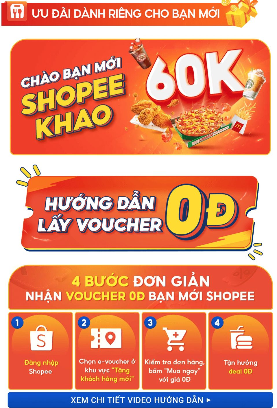 Không biết giờ này còn ai chưa có tài khoản Shopee “hông ta”? Nếu chưa thì phải nhanh tay tạo ngay tài khoản mới để nhận được ưu đãi xịn sò từ ShopeeFood với “Chào bạn mới, Shopee khao 60K” diễn ra từ nay đến 30.04.2022, giảm giá 60K trên toàn thực đơn của 15 thương hiệu ăn uống nổi tiếng.