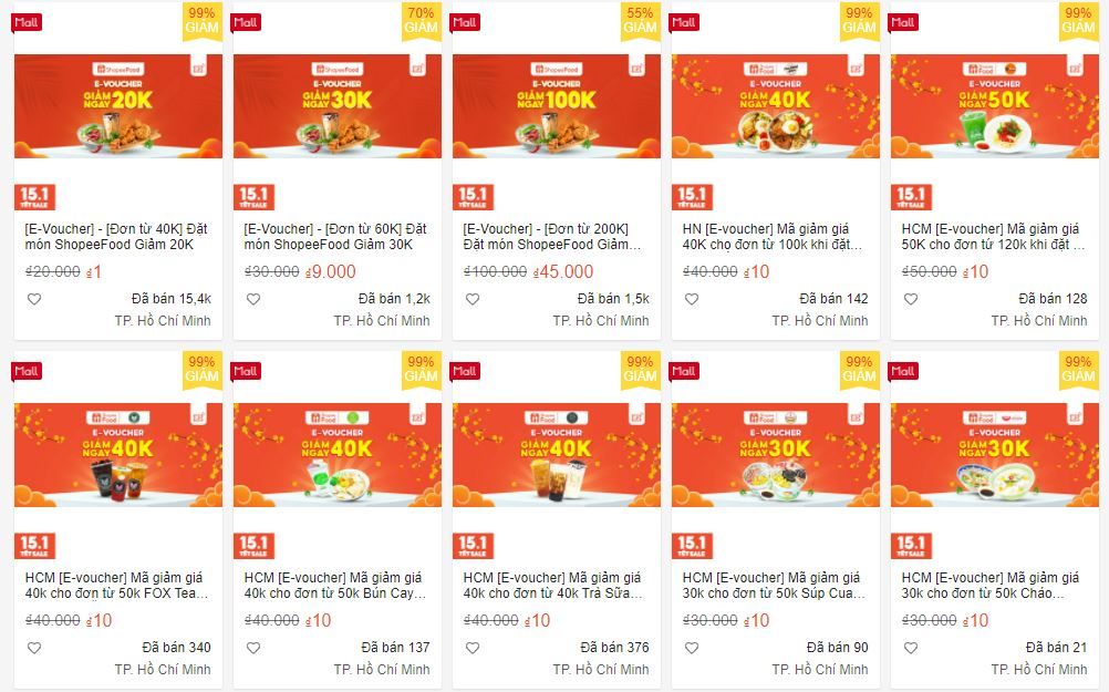 Vẫn chưa hết, ShopeeFood Tết Sale còn giới thiệu loạt e-voucher với giá siêu “hạt dẻ” chỉ từ 1 đồng. Bạn có thể thỏa thích lấp “chiếc bụng đói” của mình bằng những món ngon phủ phê và không lo về giá nữa.