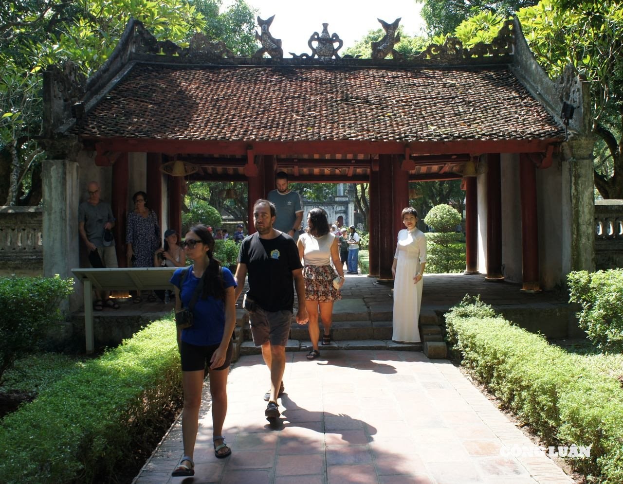 Du khách nước ngoài tham quan Văn Miếu - Quốc Tử Giám
