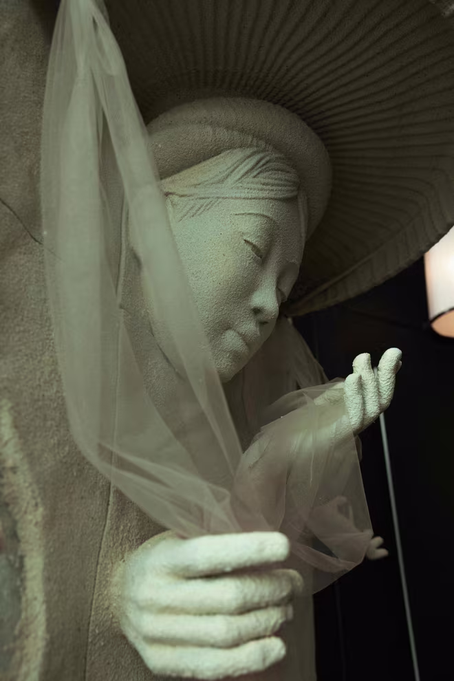 Trong tiếng vọng của đá, một bức phù điêu như khắc chạm vào chính ký ức về cái đẹp – nơi truyền thống và hiện tại giao thoa trong một dòng chảy bất tận, cái đẹp không mất đi – nó chỉ đổi hình, đổi nghĩa. Từ chân mày vòng nguyệt, môi trầu cắn chỉ, đến ánh son thời thượng rực rỡ, mọi dấu vết đều hòa làm một dòng chảy ký ức.Ở đó, bàn tay nghệ sĩ như kẻ nối nhịp, khơi dậy hương nhài, hương bưởi, hương ngọc lan… những hồn cốt của một cách làm đẹp đã ngủ yên trong tiềm thức.