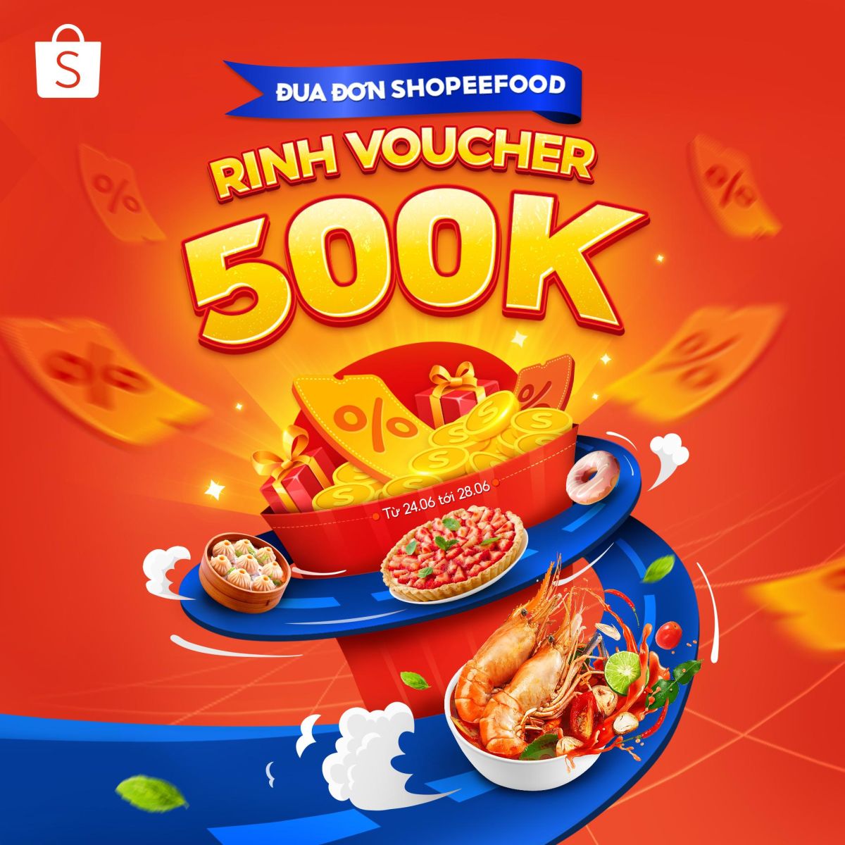 Không chỉ mang đến các ưu đãi để người dùng thoải mái đặt món, ShopeeFood còn tăng thêm phần kịch tính cho ngày 26.06 lần này với chương trình Đua đơn cùng giải thưởng hấp dẫn lên đến 500,000 đồng. Cụ thể, từ ngày 24.06 đến ngày 26.06 người chơi khi bấm đăng ký tham gia chương trình “Đua đơn ShopeeFood, rinh Voucher 500K” và sở hữu nhiều đơn hàng ShopeeFood thành công trên ứng dụng Shopee trong thời gian diễn ra sự kiện, sẽ có cơ hội nhận được 1 bộ voucher tổng trị giá 500,000 đồng, thoải mái ăn uống mà không cần nhìn giá.