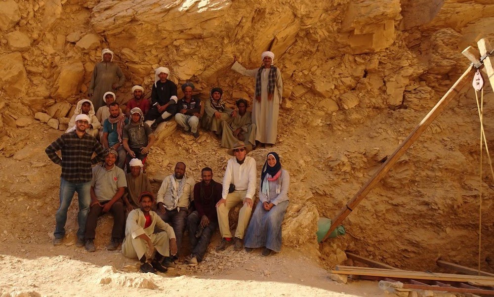 Nhà khảo cổ học người Anh Piers Litherland (thứ hai bên phải, hàng dưới) cùng nhóm khai quật đang chinh phục khám phá lớn nhất thế kỷ về văn minh Ai Cập cổ đại |