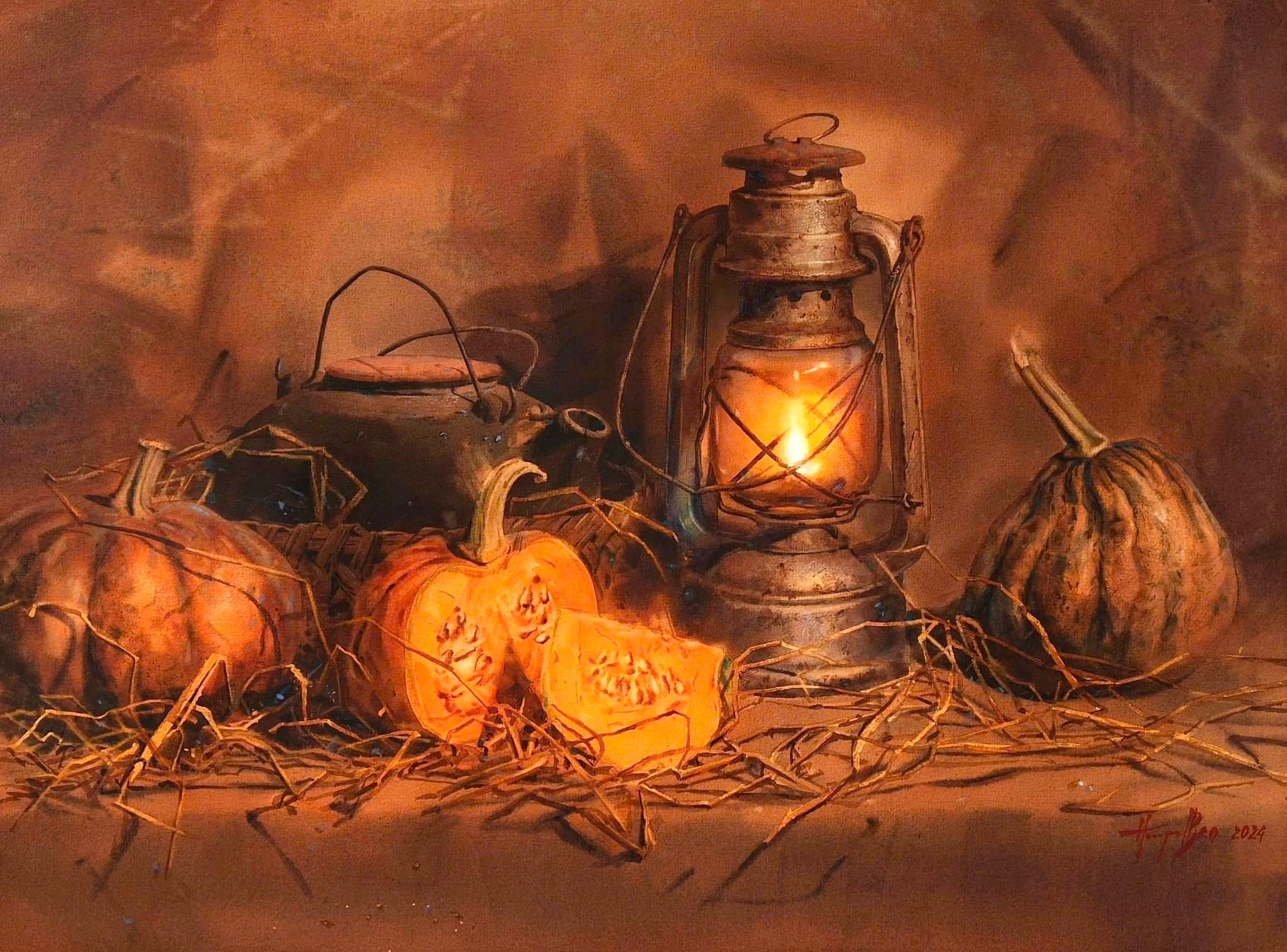 Loạt tranh màu nước của Đinh Quang Hải (Hải Tre) lại cho thấy một cảm giác mơ hồ về nguồn sáng. Tranh màu nước của Hải Tre mang đến một nhịp điệu thị giác khác biệt, thong thả, tĩnh tại nhưng sống động; ánh sáng được gợi lên từ những khoảng trống và bóng đổ. Đó là thứ ánh sáng khiến người xem phải dừng lại, tự hỏi: Đây là buổi sáng, buổi trưa hay ráng chiều? Và xa hơn, nguồn sáng nào đang được kể, qua góc nhìn của người vẽ?