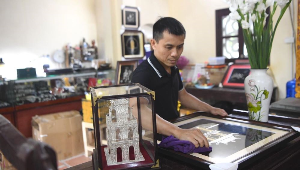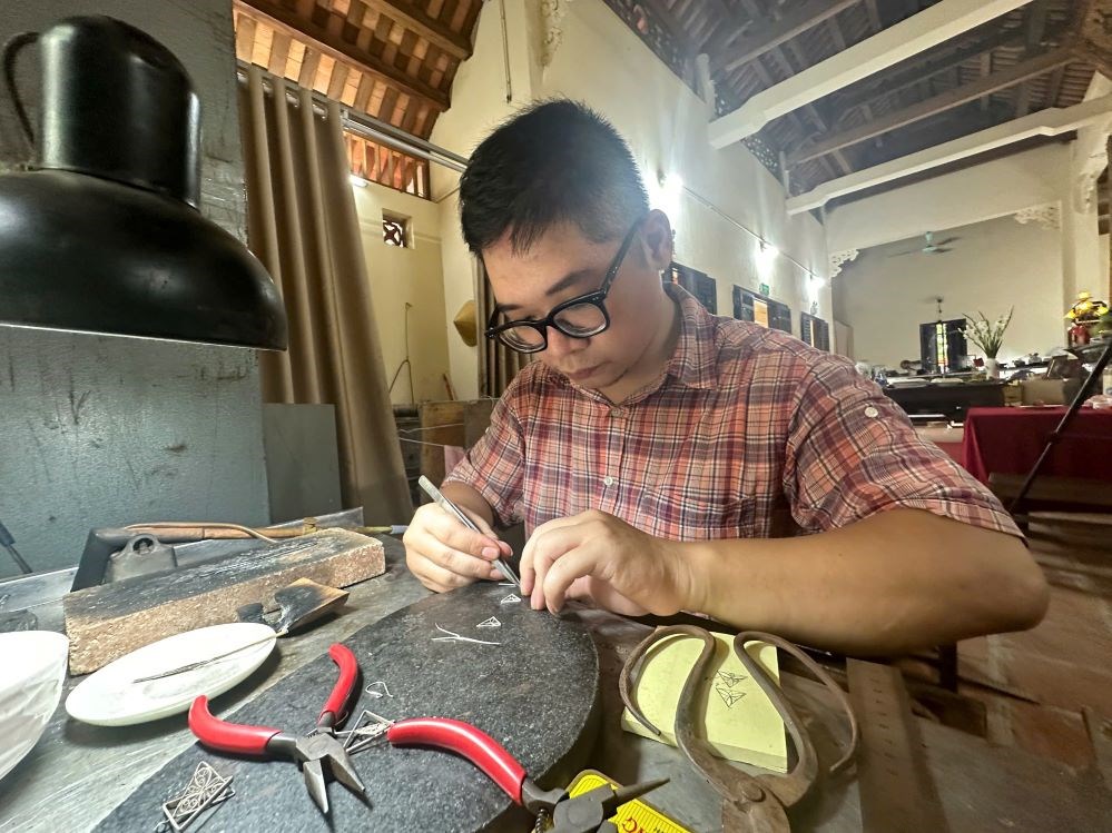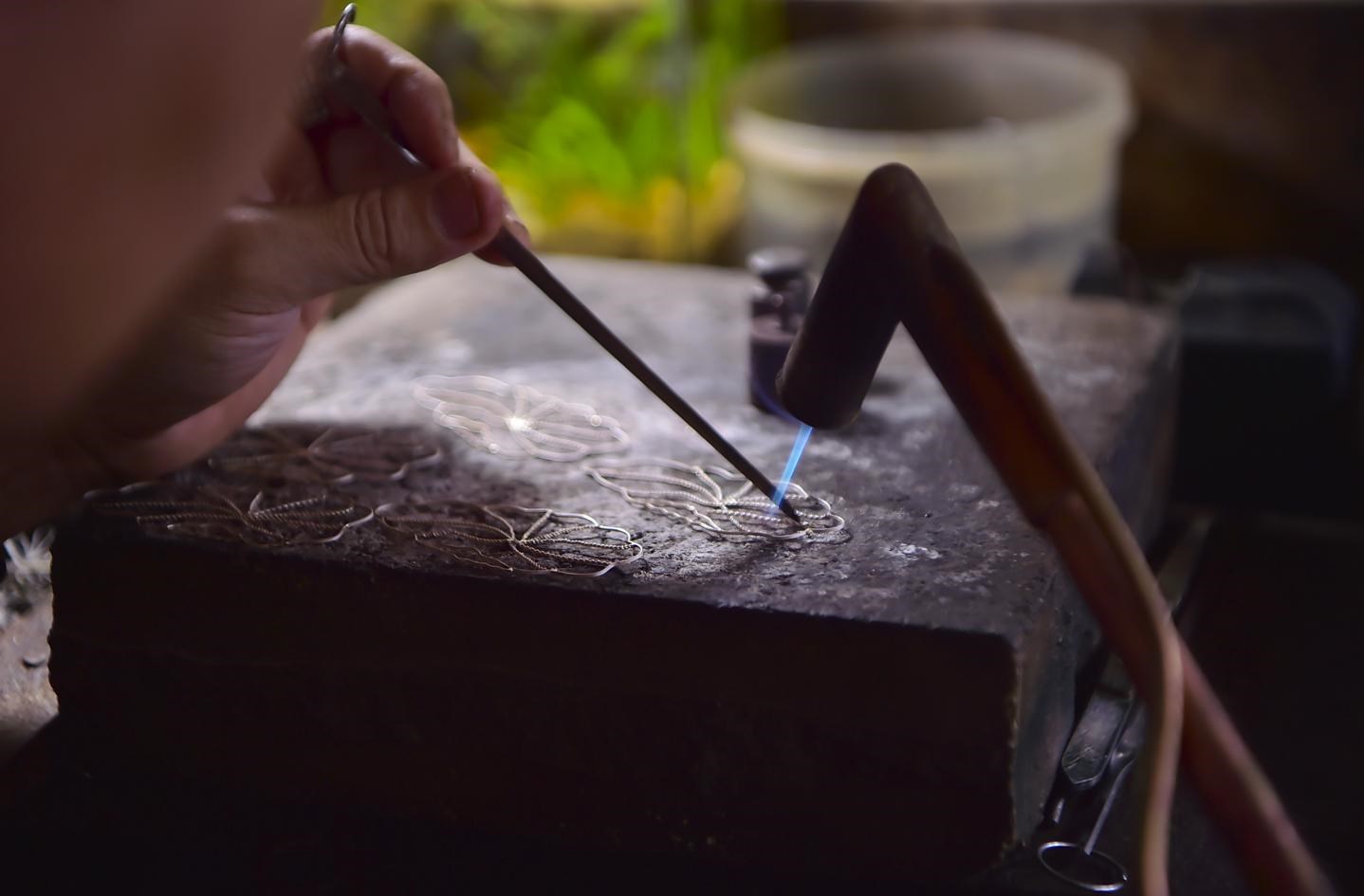 Nghệ nhân đậu bạc cần có những kỹ năng khéo léo, tinh tế để đậu từng chi tiết nhỏ cho sản phẩm. |