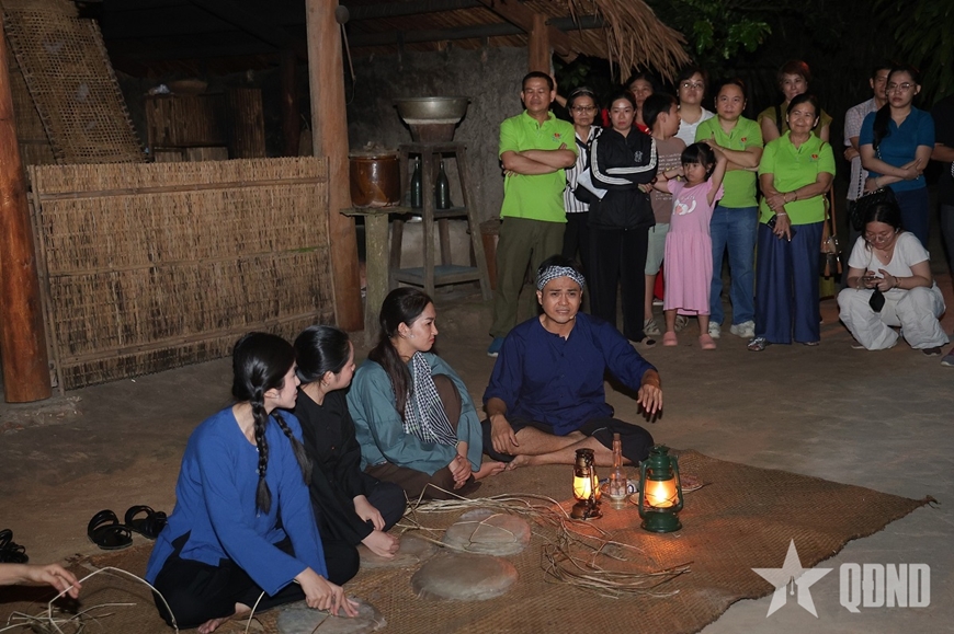 | Đêm diễn “Trăng chiến khu” tại Khu di tích lịch sử Địa đạo Củ Chi (Bộ tư lệnh TP Hồ Chí Minh, Quân khu 7) tái hiện cuộc sống sinh hoạt, chiến đấu của quân và dân Củ Chi. Ảnh: MINH QUÂN |